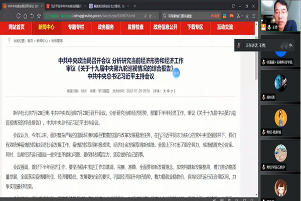 7月31日,金融工程教工党支部组织暑期线上学习暨金融数据端仪器采购论证会,会议由党支部书记、系主任王勇主持。财经学院党委副书记、纪委书记耿广汉,纪委委员、实验室主任岳文忠等应邀参加会议。