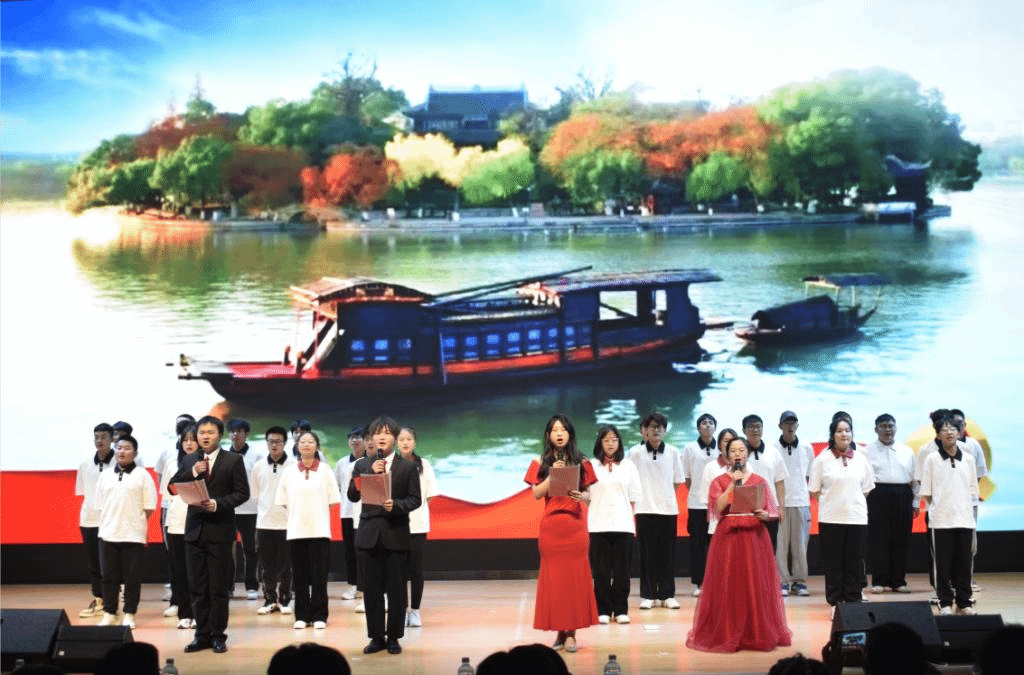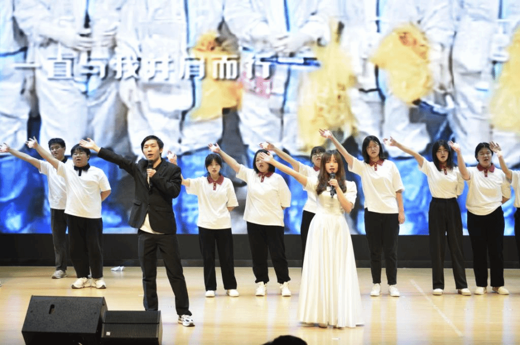 第二篇章“忆峥嵘岁月,看今朝辉煌”。朗诵诗《红船,从南湖启航》、话剧《破晓》、小品《你的模样》表达了对祖国母亲的热爱,引领现场观众领略了中国共产党的光荣历程,以及危急时刻义无反顾奔赴一线的家国情怀。歌曲《星辰大海》引领大家开启新征程,共赴美好未来。