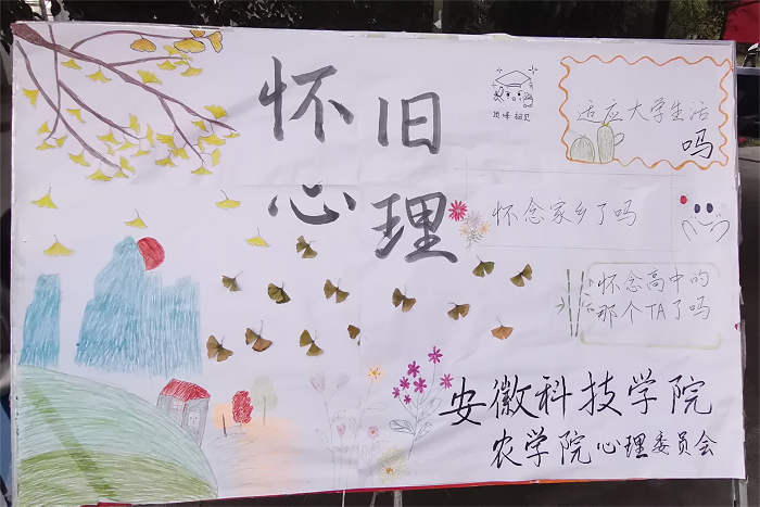 10月15日,农学院心理联合委员会携手学生会在西区天桥下摆点,以“怀旧心理”为主题举行了形式多样的心理小活动。“心愿板”的两大块展板被涂画得很满,许多同学写下了自己的愿望或者平时很想表达却没有说出口的话。本次活动精彩有趣而富有意义,进一步普及了心理健康知识,增强了大学生的心理健康保健意识。