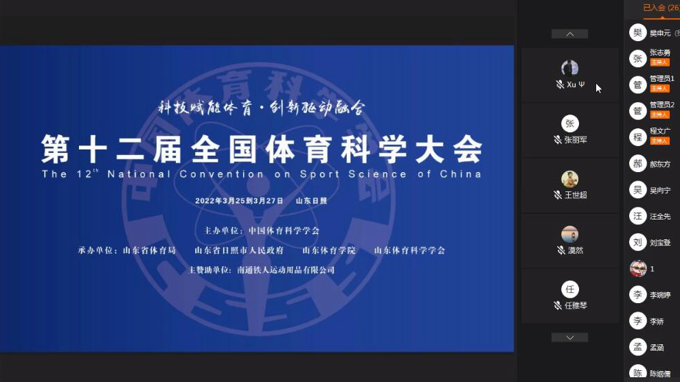 第十二届全国体育科学大会原计划于2021年10月在山东日照举行,但由于疫情原因,推迟到今年3月25日-27日在线上举行,本次大会由山东省体育局、山东省日照市人民政府、山东体育学院、山东体育科学学会共同承办,大会主题为“科技赋能体育 创新驱动融合”。全国体育科学大会是由中国体育科学学会主办的国内最具权威性和影响力、最大规模和最高层次的综合性体育学术会议,是全国体育科技工作者展示最新体育科研成果、科技成果和交流科技信息的盛会。