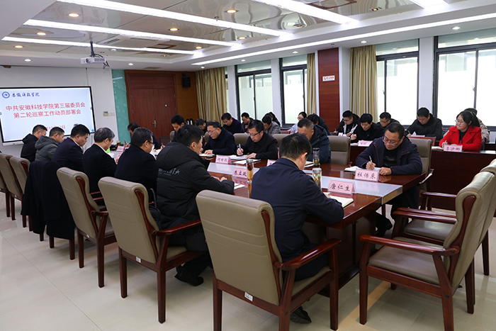 12月17日下午,中共安徽科技学院第三届委员会第二轮巡察工作动员部署会召开。校党委书记、巡察工作领导小组组长蒋德勤作动员部署讲话。会议由校党委委员、纪委书记、监察专员王强主持。第二轮巡察巡察组全体成员,巡察办全体成员,纪委办公室、组织部负责同志,被巡察单位党政主要领导及联络员参加了会议。