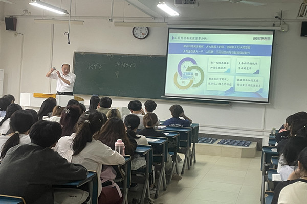 6月7日,李升和在凤阳校区新知楼A210教室为机械工程学院2023级机械设计制造及其自动化专业本科生讲授“当前就业形势与实施就业优先战略”专题“形势与政策”课。