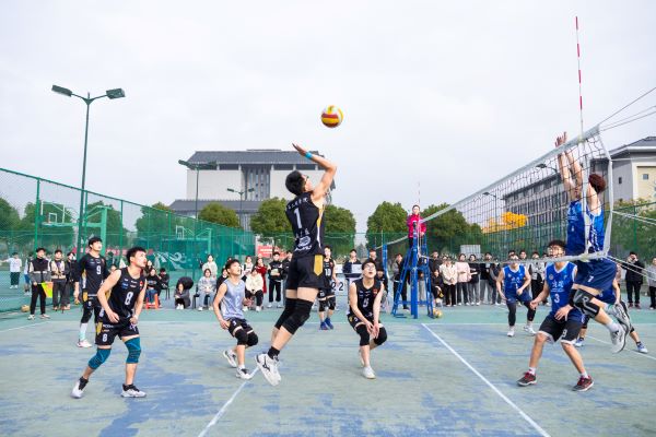 历时一个半月的角逐,凤阳校区和龙湖校区的分区总冠军,迎来巅峰之战。一声哨响之后,双方迅速进入状态,展开了精彩的比拼。运动员们各施绝技,起跳、发球、拦网、鱼跃、扣杀,每一次精彩的传球与得分都迎来欢呼阵阵,“加油、加油”的助威声铿锵有力,此起彼伏,队员们充分发挥出自己精湛的个人技术和娴熟的战术配合,每一个传球都凝聚着智慧与团结,每一次接球都尽显他们青春的活力。