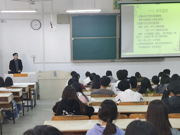 11月2日下午,组织开展《新环境、心适应、心健康》新生适应讲座。22级各班级心理委员、宿舍心理健康宣传员及部分大一新生近300人到场聆听学习。讲座围绕适应的定义、大学生常见的适应主题、如何尽快适应大学生活三个部分展开,深入浅出地对大学生常见的适应性困扰做了分析与指导,强化了大一新同学对大学生活和学习的认识,解答了同学们在融入大学生活过程中的困惑,为他们尽快适应大学生活创造了良好环境。
