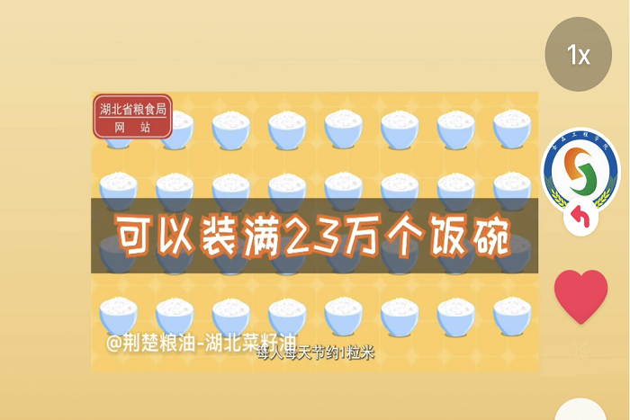 在抖音新媒体发布主题视频,拓宽宣传渠道。生动展示国家粮食安全事业取得的历史性成就,传递了爱惜粮食、节约粮食的理念,引起广大同学共鸣。