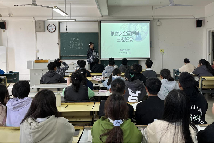 召开主题班会,深入传播节粮观念。在食品质量与安全专业学生党支部精心指导下,各专业班级从粮食安全政策、粮食安全形势、如何践行粮食安全理念等方面进行详细解读,讲好中国粮食故事,为全体学生上了一堂生动立体的粮食安全思政大课。