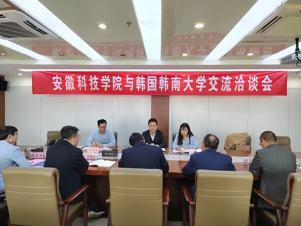 校党委委员、副院长李升和在图书馆十楼会议室主持召开安徽科技学院与韩国韩南大学交流洽谈会。李升和代表学校致欢迎辞,首先向来宾介绍我校近些年事业发展情况,他简要回顾两校合作办学项目所取得的丰硕成果。机械设计制造及其自动化中韩合作办学项目已顺利运行十余年,是安徽省办学时间最长的中外合作办学项目,也是唯一一个两次通过教育部评估的项目。他感谢韩南大学对于我校国际合作交流的大力支持,希望通过此次访问,全面推动两校之间深入交流与合作,拓展合作领域,丰富合作形式,提升合作水平。金元培代表韩南大学交流发言。他指出,两校合作举办的项目在韩国成为示范性国际合作项目,对两校相关部门工作人员和项目教师为此付出的辛勤努力表示由衷的感谢。教务处处长赵伟峰,国际交流与合作处处长陈德用,机械工程学院党委书记姚勇,党委副书记、副院长(主持工作)李同杰,副院长张华等人参加会议。