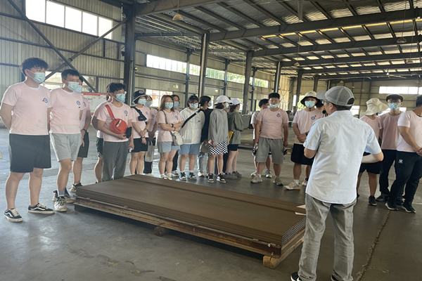 在安徽森泰木塑集团股份有限公司的生产车间,同学们认真观摩了将竹材废料转变为可在鸟巢使用的无污染建材产品的生产流程;在研发中心,同学们学习了企业对材料性能的各种检测手段和对质量的严格把控规范;在会议室,同学们和企业的人力资源部、车间生产负责人进行交流,了解了企业在招聘时重点关注的素养和技能。