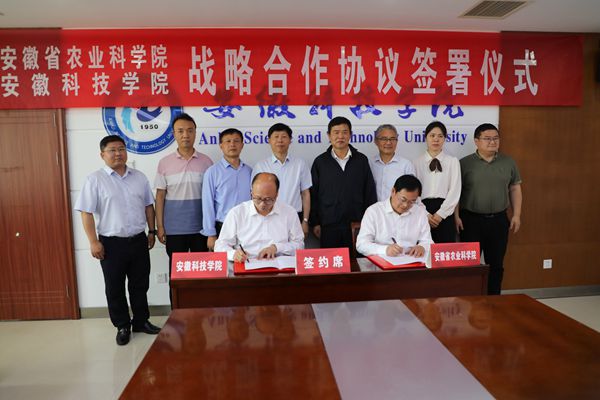 王孝义和李成代表双方签署了《安徽科技学院安徽省农业科学院战略合作框架协议》《安徽科技学院与安徽省农业科学院联合培养研究生协议》;双方观看了安徽科技学院宣传片,并围绕科研平台建设、项目申报、人才培养等方面进行深入交流。(特约通讯员:刘晓丹 摄影:陈宝 审核:陈丰 胡文靖 编辑:李锦)