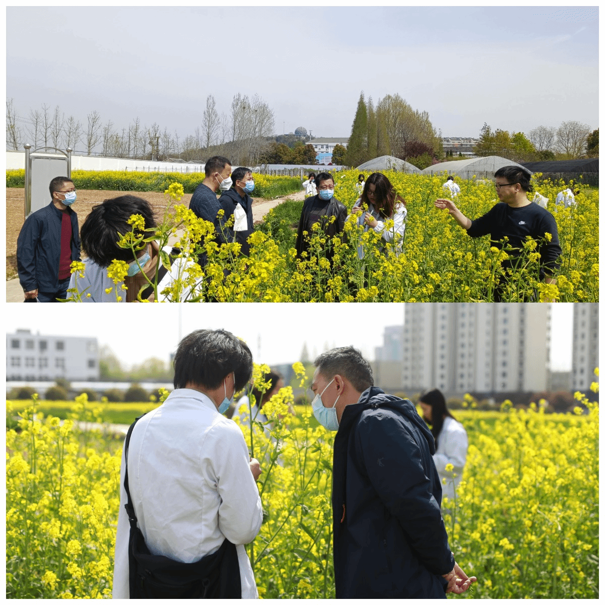 卫胜一行督查了活动现场的疫情防控相关要求的落实情况,参观了农耕文化墙、作物认知圃,参与了农耕文化节系列活动,并与同学们现场亲切互动交流。卫胜一行还深入田间,走进育种实践教学现场,与授课教师、同学们一起进行油菜杂交育种授粉、扎袋等实践活动。