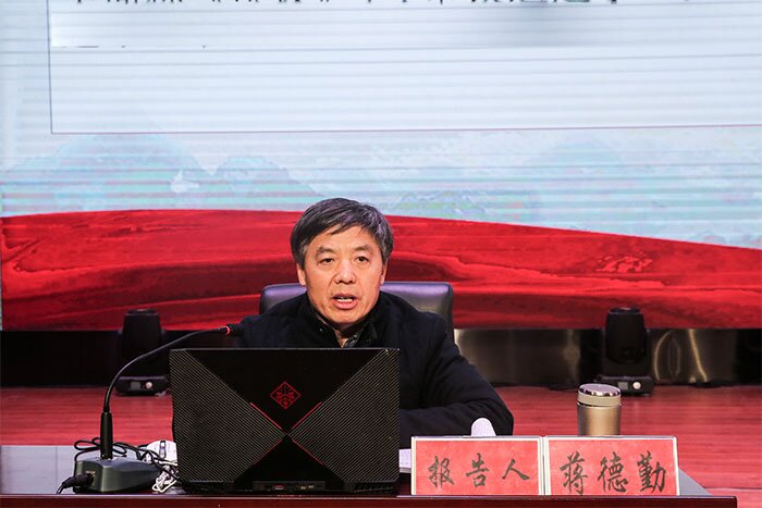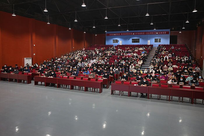 128日下午,校党委书记蒋德勤在凤阳校区大学生活动中心为动物科学学院、外国语学院、人文学院、马克思主义学院和机关党委、离退休党总支教职工和研究生、本科生代表作党的十九届六中全会精神宣讲报告。