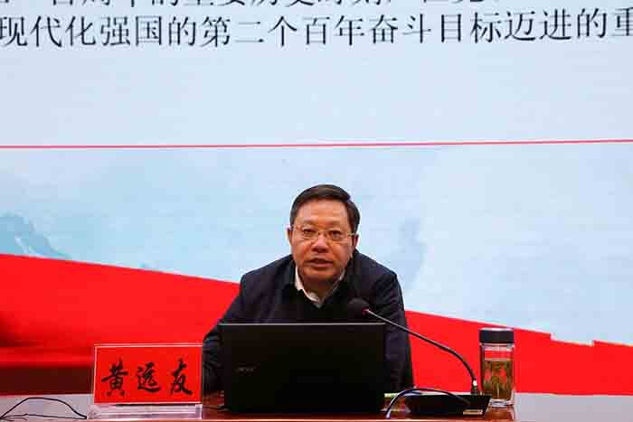 12月15日下午,党委委员、副校长黄远友在龙湖校区图书馆东报告厅为信息与网络工程学院、电气与电子工程学院、管理学院教职工和研究生、本科生代表作党的十九届六中全会精神宣讲报告。