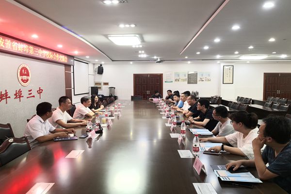交流会上,与会人员对蚌埠市第三中学2021年高考生源进行了分析,对我校学科优势、专业特色、招生政策等进行了深入交流。两校还就进一步拓展合作领域,推进资源共享,构建大学与高中教育衔接的育人模式等工作进行了深入探讨。(作者:张俊 审核:杜小明 姚文均 编辑:张威)