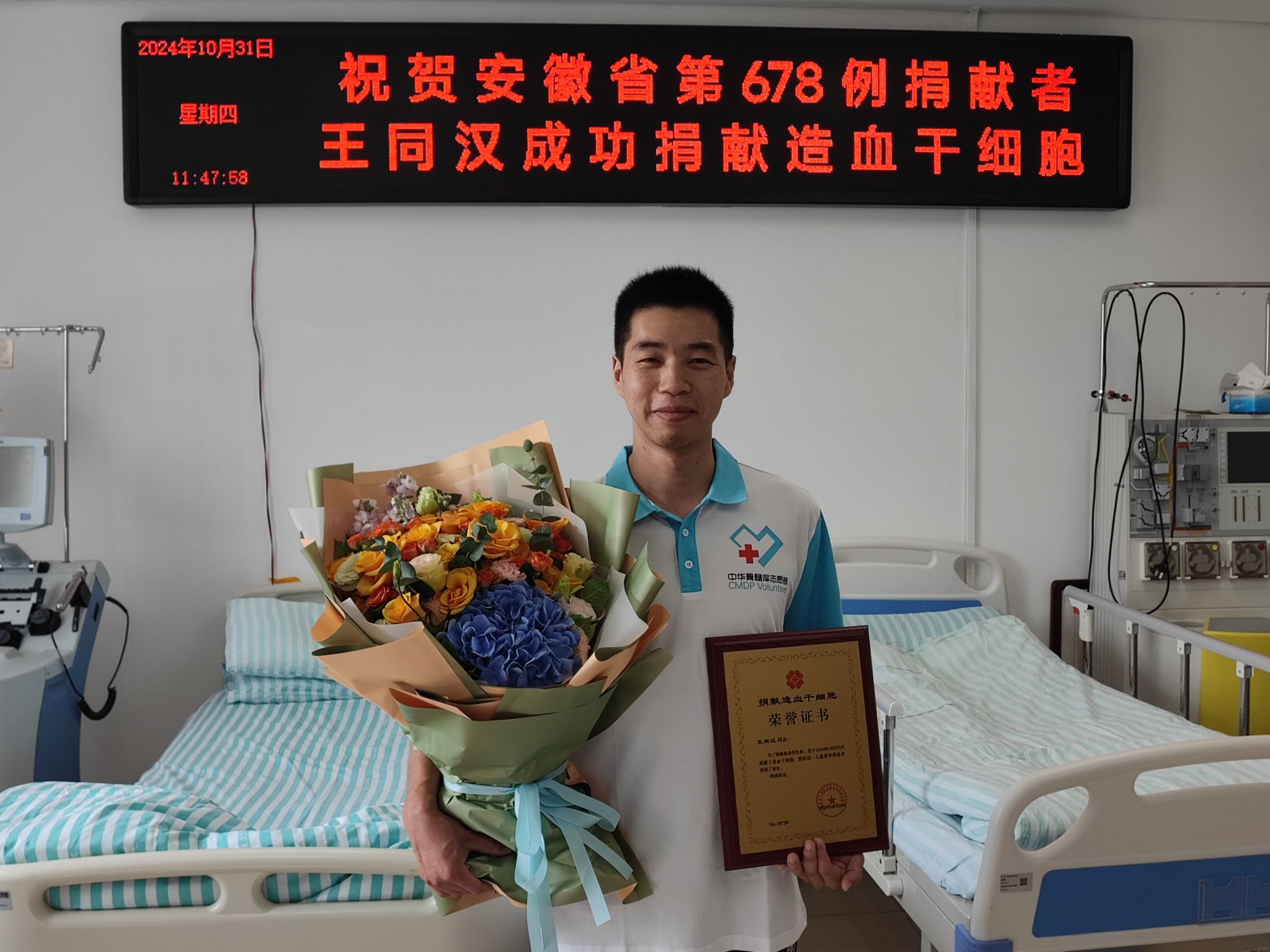 近日,我校农学院2023级研究生王同汉在安徽省立医院成功完成造血干细胞的采集和捐献,为一名白血病患者点亮了希望的生命之光,成为我校首例、安徽省第678例造血干细胞捐献者。王同汉的捐献行为得到了学校和社会各界的高度赞誉。