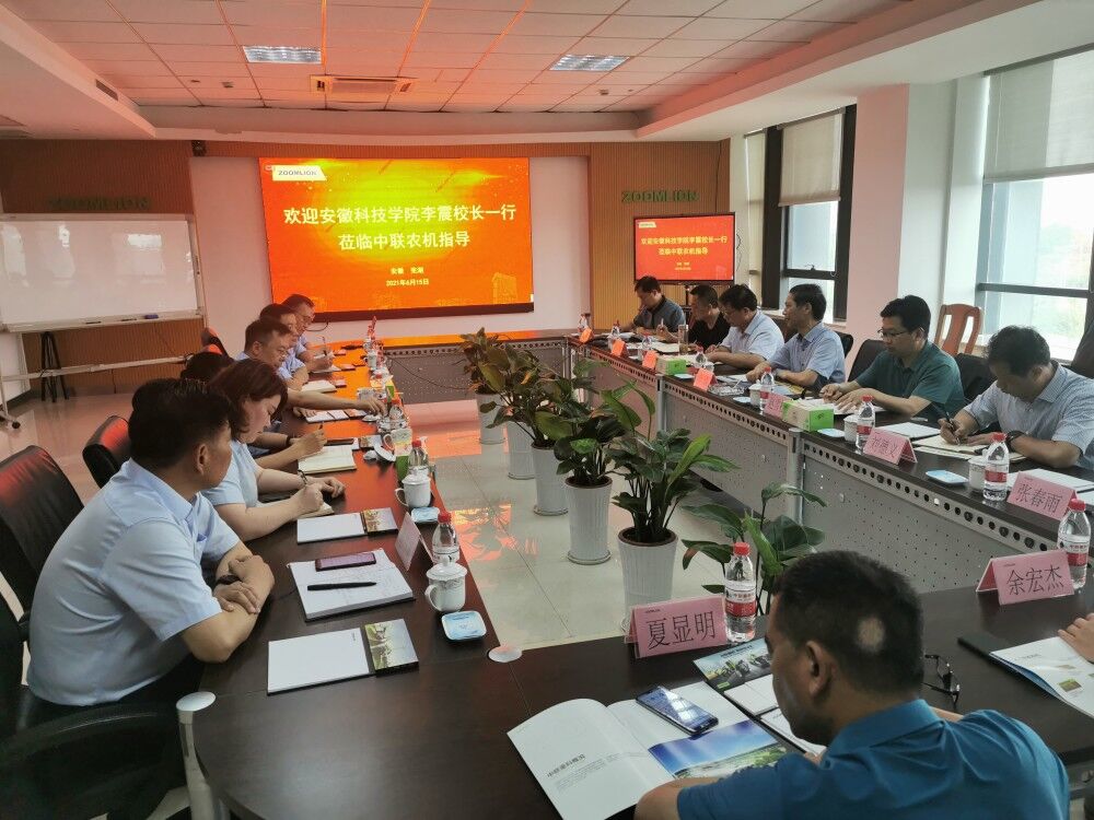 李震感谢中联农业机械股份有限公司领导的热情接待,介绍了我校近年来的发展概况和学校“三步走”发展战略。李震在数字农业软件和硬件研究、研究生联合培养、共建小岗数字农业示范项目等方面提出合作期望,他指出,安徽科技学院和中联农业机械股份有限公司在数字农业领域有着广泛的合作基础,希望在国家实施乡村振兴战略的背景下,能够进一步加强校企合作,共同推动国家数字农业的发展。李升和副校长、各学院负责人结合数字农业技术创新和人才培育等方面的具体问题进行了深入交流。