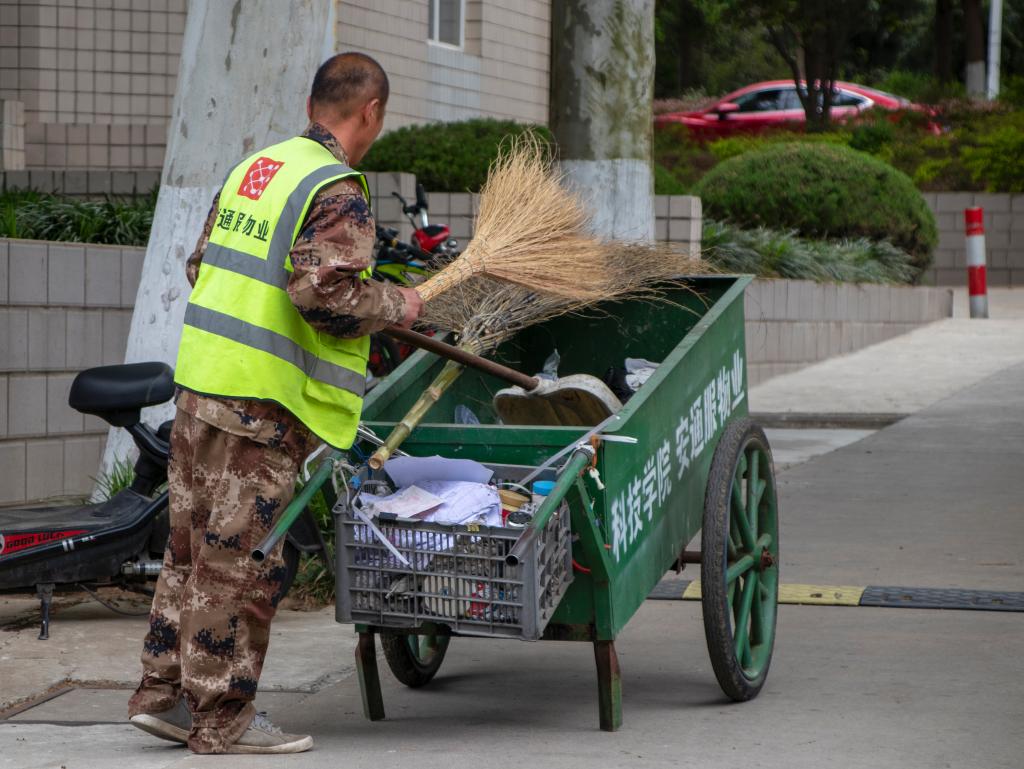 校园里干净整洁的道路,离不开环卫工人的付出,是他们,给我们带来更加美好的学习环境,他们是安科默默无闻的奉献者。