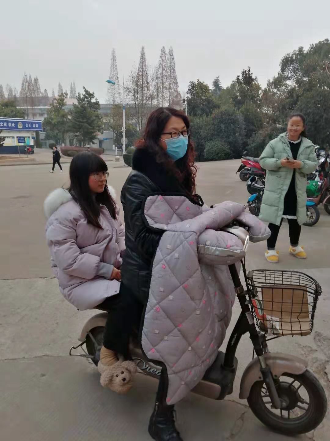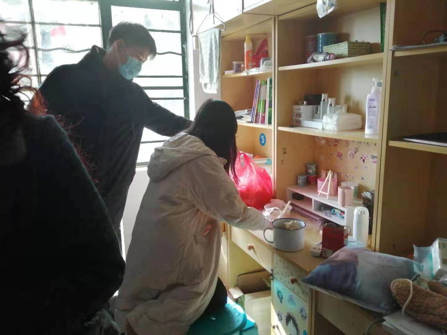 东园1号楼2020级一名新生脚受伤,无法独立行走,公寓宿管陈莉和徐吉华每天骑着电动车接送该同学上下课、去医院拍片和校医院换药,炖骨头汤送到学生寝室给同学增强营养。