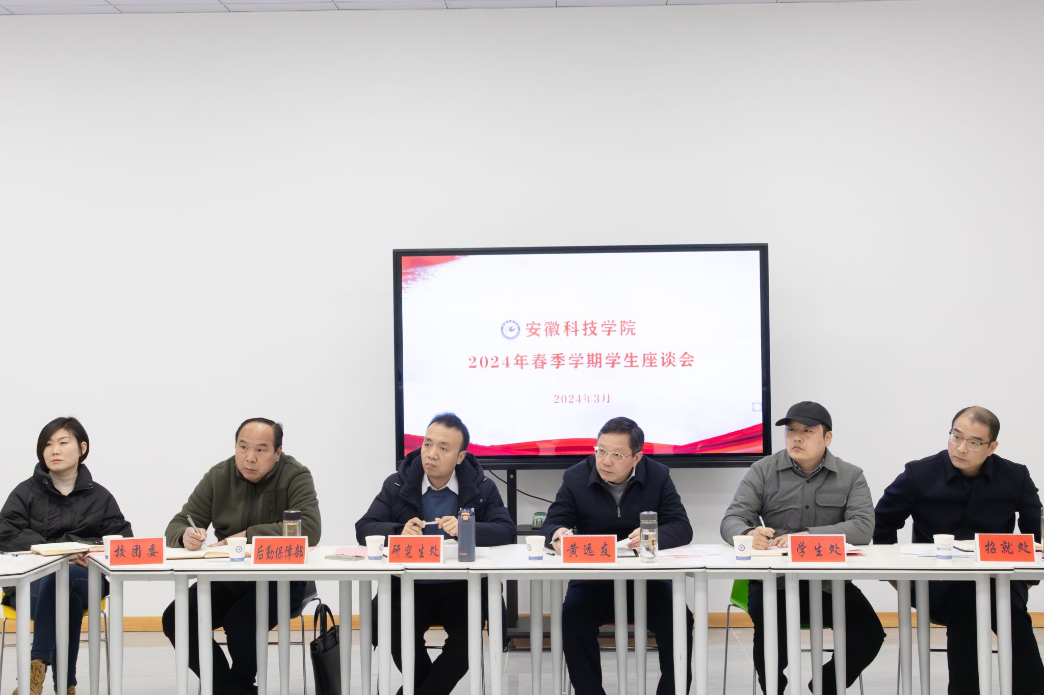 为倾听青年心声,针对青年思想困惑和实际需求,及时有效为青年排忧解难,做好新学期学生工作,3月6日下午,我校在龙湖校区“一站式”学生社区综合服务中心召开2024年春季学期学生座谈会。党委委员、副校长黄远友应邀与20余名学生代表围坐在一起,面对面交流。学生处、研究生处、招就处、后勤保障部、校团委相关部门负责人参加座谈会。