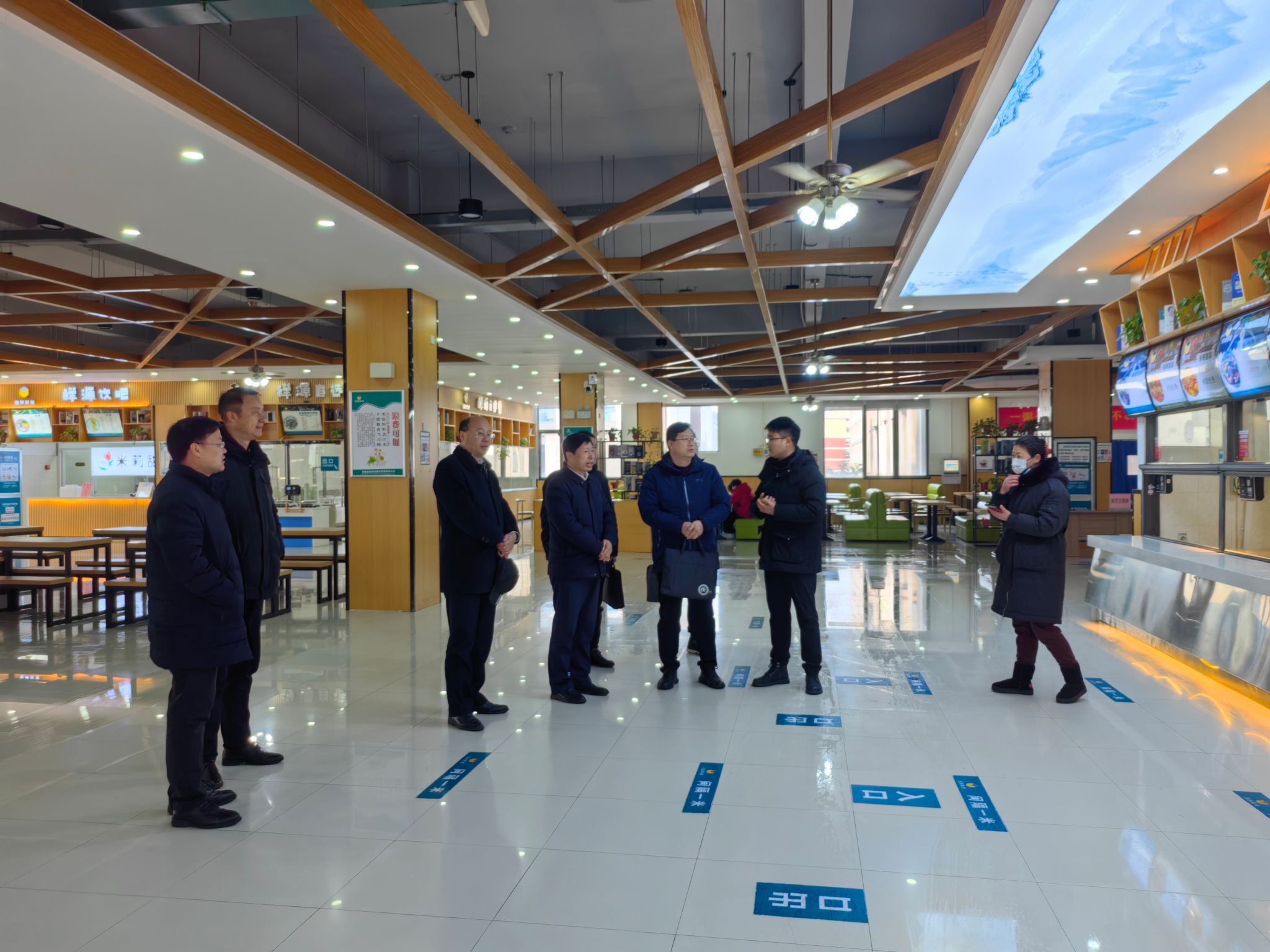 听课结束后,校领导带领有关部门负责同志,分别深入凤阳校区和龙湖校区一线,对教室、食堂、学生宿舍、校医院、超市、快递点等师生学习、生活、服务保障重点场所进行全面细致的检查,听取相关部门(单位)负责同志工作情况汇报,与一线工作人员和师生亲切交谈。