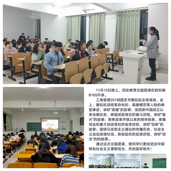 为深入学习“四史”,进一步弘扬中国共产党历史文化。11月5日晚上,资源与环境学院于新B101和新B202举行以“深入学习四史,坚定初心使命”为主题的实践活动。第53期党课学员参加,活动由学生党员闫振宇和王多阳主持。