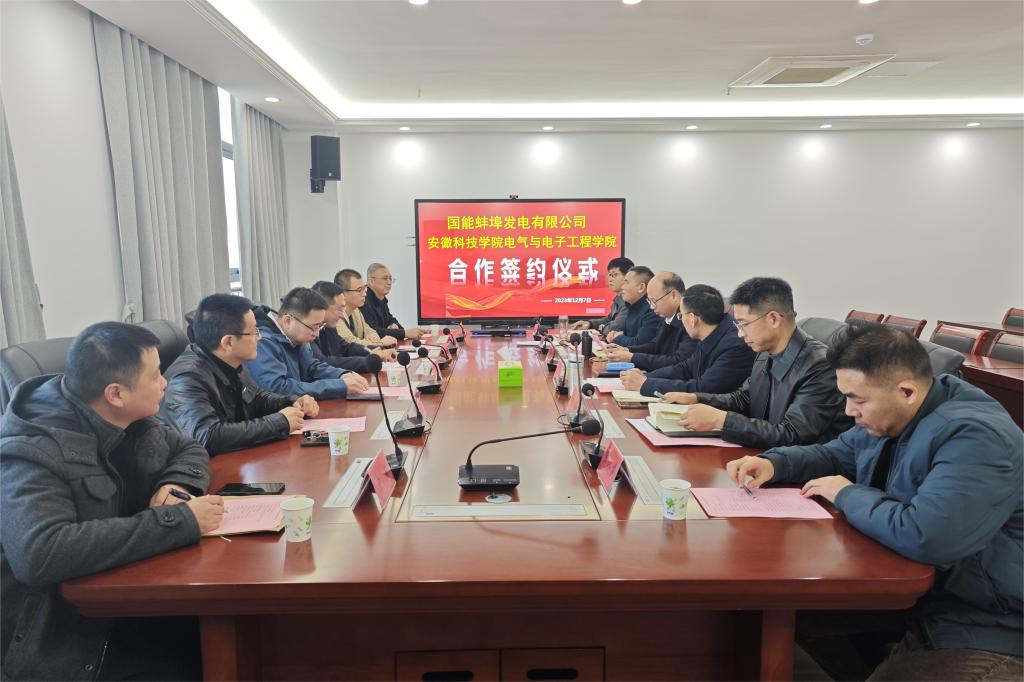 为进一步促进校企产学研合作,加强学校服务企业科技创新,12月7日下午,电气与电子工程学院与国能蚌埠发电有限公司横向科研项目合作签约仪式在龙湖校区西辅楼317会议室举行。校党委委员、副校长王孝义出席并讲话。电气与电子工程学院党委书记骆海邦,院长夏显明,副院长国海、樊晓宇,国能蚌埠发电有限公司党委委员、副总经理岑帆,设备管理部主任、党支部书记贾本康,以及双方有关部门负责人出席仪式,并就推进校企深度合作进行座谈交流,会议由夏显明主持。