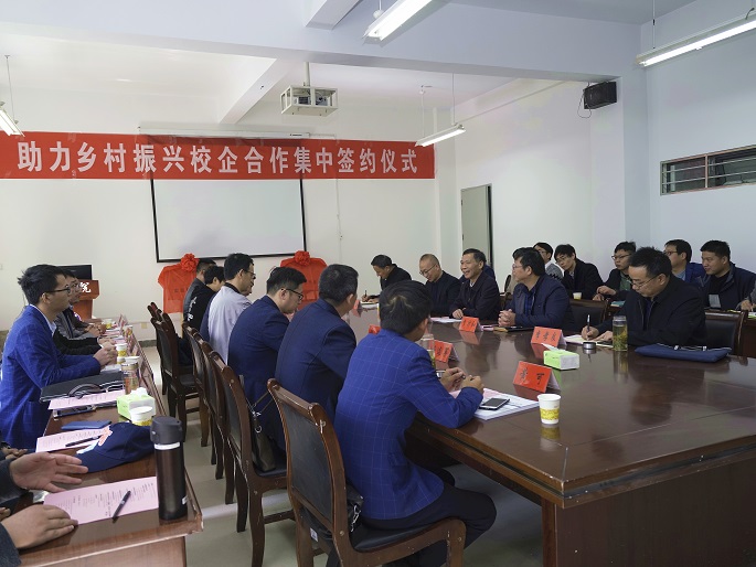 为庆祝建校70周年,进一步助力乡村振兴,推进产教融合,深化校企合作,11月4日上午,我校与省内外7家企业举行助力乡村振兴校企合作集中签约仪式。党委副书记、校长李震,党委委员、副校长李升和,科研处处长肖新,资源与环境学院党总支书记李孟良,副院长李孝良,院长助理谢越,以及部分师生参会,会议由李孟良主持。