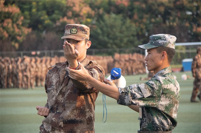 闲暇时的欢笑,让训练的劳累不再繁重。我们谈天说地,我们相互打气。欢声笑语间,彼此的距离不再遥远。灿烂的笑容掩盖了疲倦的面庞,响亮的军歌鼓起了坚持下的勇气。这不是一种简单的快乐和放松,团结与友爱的精神散在里面,隐在其中,潜移默化间传承在心中。