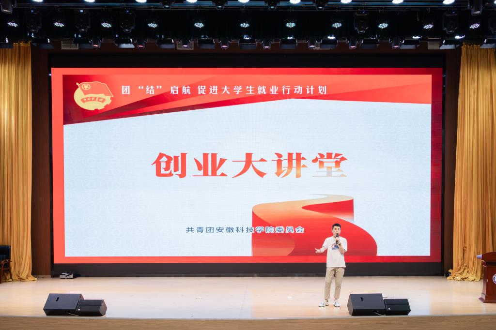 许胜胜以“初心”“选择”“目标”“前行”为关键词,讲述了他的创业之路。“从选择来到安徽科技学院求学的那一刻起,我就给自己定立了一个目标,那就是做一个对社会和国家有贡献的人。一直以来我是这么想的,更是这么做的。”许胜胜深情地说。他与现场同学分享了他在校期间在KAB创业俱乐部、大学生创业园的工作经历,以及毕业后的创业经历。他指出,每一个人都要定好人生的奋斗目标,以“咬定青山不放松的”毅力,“衣带渐宽终不悔”的决心,“不畏浮云遮望眼”的勇气,在时代的洪流中奋力前行。