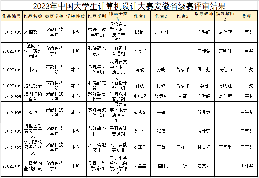 同时,我校学子在安徽省级赛中同样表现优异,共有9件作品获奖,其中一等奖2项、二等奖3项,三等奖3项,优胜奖1项。