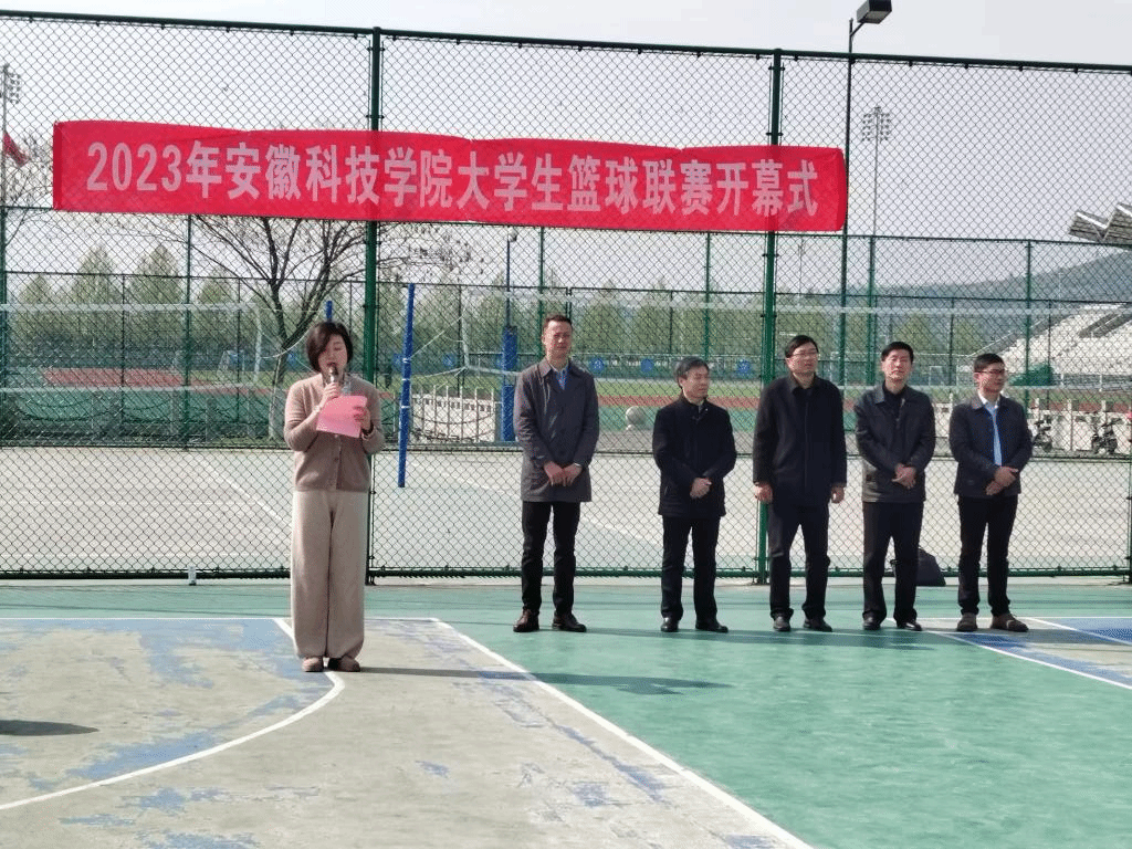4月8日上午,我校2023年大学生男子篮球联赛开幕式在龙湖校区举行。校党委书记蒋德勤出席开幕式并宣布安徽科技学院第十三届大学生篮球联赛开幕。