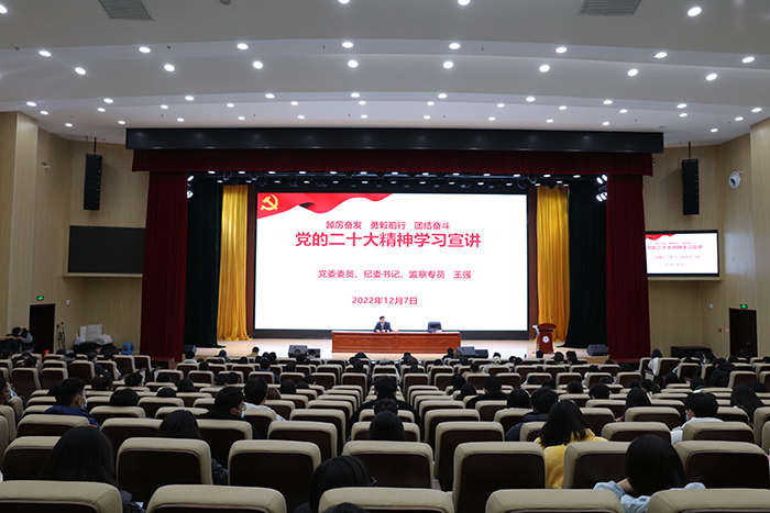 12月7日下午,党委委员、纪委书记、监察专员王强在龙湖校区信息中心东辅楼报告厅为财经学院、化学与材料工程学院教职工和学生骨干代表作党的二十大精神宣讲报告。
