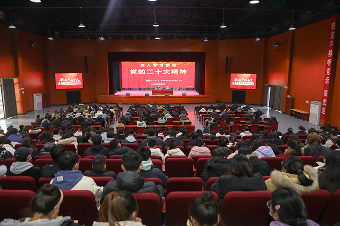 校领导指出,党的二十大是在全党全国各族人民迈上全面建设社会主义现代化国家新征程、向第二个百年奋斗目标进军的关键时刻召开的一次十分重要的大会,是一次高举旗帜、凝聚力量、团结奋进的大会。大会通过的习近平同志代表第十九届中央委员会所作的《高举中国特色社会主义伟大旗帜为全面建设社会主义现代化国家而团结奋斗》的报告,深刻阐释了新时代坚持和发展中国特色社会主义的一系列重大理论和实践问题,描绘了全面建设社会主义现代化国家、全面推进中华民族伟大复兴的宏伟蓝图,为新时代新征程党和国家事业发展、实现第二个百年奋斗目标指明了前进方向、确立了行动指南,是党和人民智慧的结晶,是党团结带领全国各族人民夺取中国特色社会主义新胜利的政治宣言和行动纲领,是马克思主义的纲领性文献。大会作出的决策部署、取得的丰硕成果,必将对新时代党和国家事业发展、推进中华民族伟大复兴历史进程,对夺取中国特色社会主义新胜利,产生重大而深远的影响。