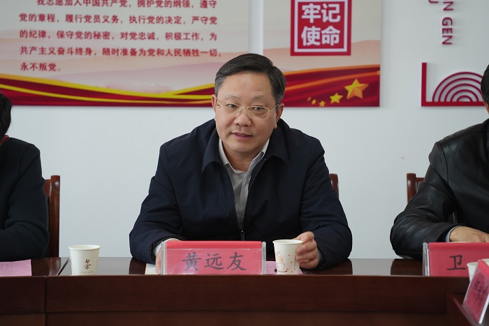 黄远友在讲话中对黄湾乡党委政府和吴窑村两委班子长期以来关心和支持学校驻吴窑村工作队工作表示感谢,对学校机关党委与吴窑村党总支建立结对共建合作关系表示祝贺。他指出,学校与定点帮扶村开展党组织结对共建活动很有意义,是校地落实党的二十大精神的具体举措,抓住了关键、抓住了根本,希望校地双方以此为契机和新起点,站在全面建设社会主义现代化国家的第一线、推进乡村振兴的最前沿、实现农业农村现代化的大潮头,加强谋划,结合实际,围绕中心,发挥双方的优势,整合双方的资源,在深入交流合作中以高质量的党建引领吴窑村乡村振兴。