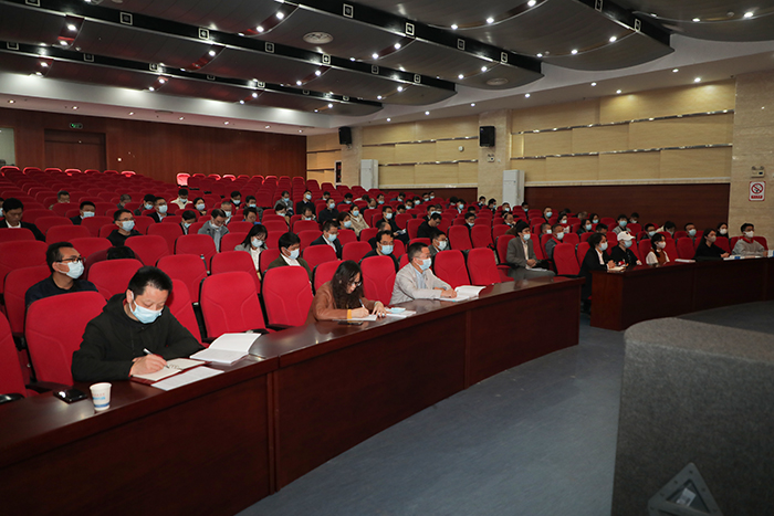 张春雨就此次导师培训安排作了简要介绍。本次培训工作主要围绕导师职责与职业素养、学术规范与科研诚信、师德师风与育人使命、研究生教育最新政策与趋势等方面进行,分为学校培训和学院培训两部分,采用线上培训和线下培训相结合的方式进行,为期两个月。