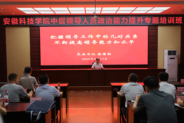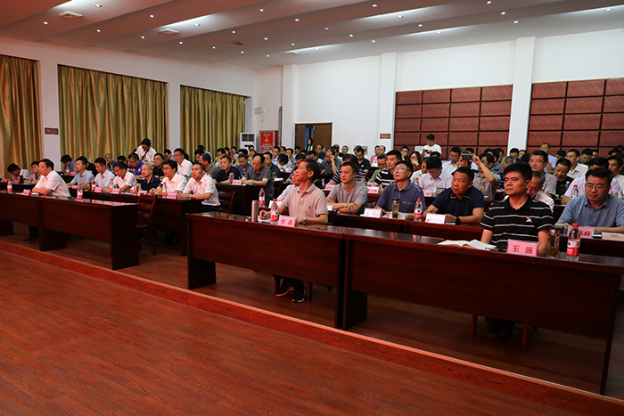 8月17日晚,党委书记蒋德勤在泾县县委党校教室为全体中层领导人员政治能力提升专题培训班学员作辅导报告,全体处级干部参加报告会。