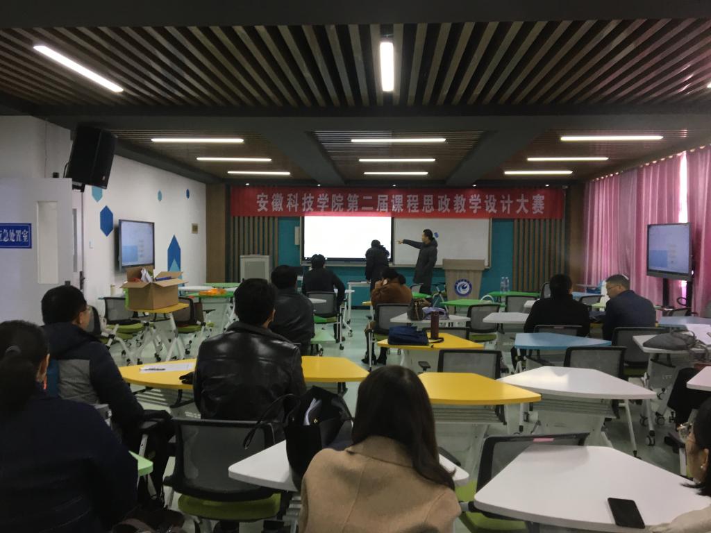 为深入贯彻全国教育大会和习近平总书记关于教育的重要论述精神,落实《全国高等学校课程思政建设指导纲要》,进一步推进课程思政教学改革,促使专业教学和思政教育深度有机融合,利用课堂教学主渠道,培养学生的爱国情怀、人文素养和责任意识,构建全员全方位全过程育人的良好格局,11月27日,安徽科技学院第二届课程思政教学教学设计大赛在凤阳校区智慧教室举办。此次大赛由教务处主办,经教师个人申报,各学院初赛及推荐,共有来自15个教学院部的34名教师报名参加学校决赛。
