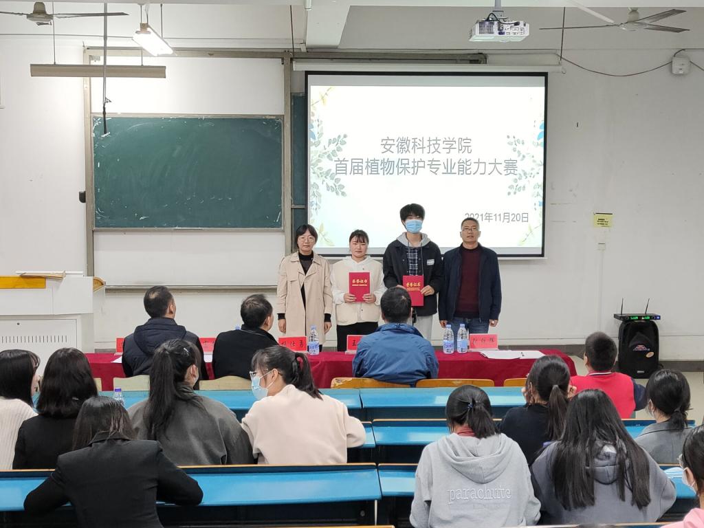 为加强学生的专业技能和创新实践能力,全面提高学生们的综合素质,2021年11月20日,安徽科技学院首届植物保护专业能力大赛于新知楼A110成功举办。本次大赛由安徽科技学院教务处创新创业学院主办,农学院承办。马克思主义学院杨仕勇、生命与健康科学学院王松、教务处闫富雄、建筑学院连洪燕、农学院张轶辉老师担任本次比赛的评委。农学院植物保护系主任毕亚玲和王增霞博士参加本次活动。比赛由农学院金禾创新创业中心王雨国和周晨星主持。