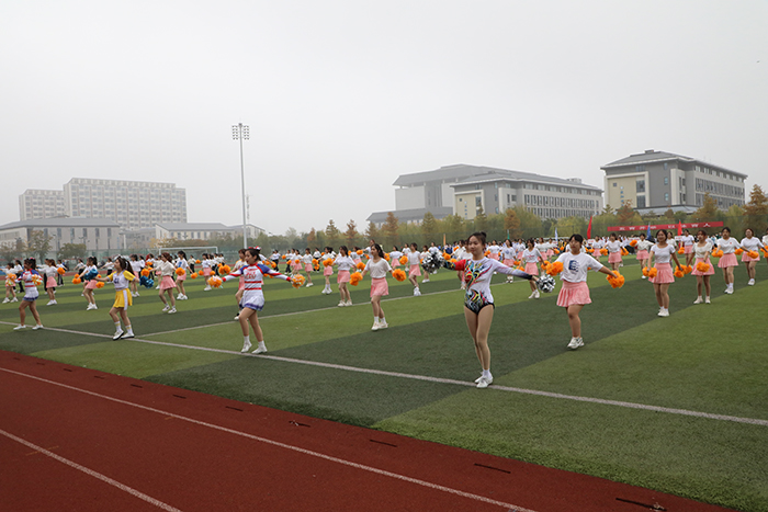 随后的文体表演为在场师生带来了一场别开生面的视觉盛宴,将开幕式推向高潮。长龙盘腾起舞,醒狮攀爬跳跃,武术刚劲有力,给观众带来强烈的视觉冲击,赢得阵阵掌声;团体操、啦啦操、健美操、街舞队的队员们活力满满,将柔美的舞姿与动感的脚步完美结合,彰显了当代青年继承传统、创新出新的独特态度,散发青春光芒,令在场师生眼前一亮,引得观众连连赞叹。