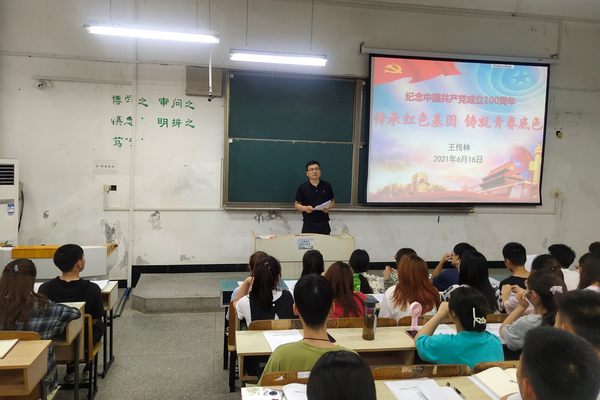 宣讲从“学习传承中国共产党伟大精神”“铸就青春底色,强化使命担当”两个方面展开。王传林首先带领大家一起学习习近平总书记关于中国共产党精神的重要论述,对中国共产党精神谱系的发展脉络进行了讲解,重点介绍了红船精神、井冈山精神、长征精神、延安精神、小岗精神和伟大抗疫精神的精神内涵、产生过程和现实意义,并从历史同根、精神同源和价值同向等三个层面阐述了中国共产党精神谱系的内在联系。报告指出,新时代中国青年正处在中华民族发展的最好时期,青年大学生要牢记习近平总书记的谆谆教导,大力发扬红色传统、传承红色基因,赓续共产党人精神血脉。特别是要加强党史学习,以党史铸魂补钙、涵养精神,在弘扬精神中攻坚克难,在传承血脉中开拓前行。王传林还从“坚定理想信念,做马克思主义的忠实信仰者和传播者”“坚定“四个自信”,做新时代爱国主义的积极践行者和传播者”“努力增强本领,始终将个人梦和国家梦统一起来”等四个方面向同学们提出了希望和要求。