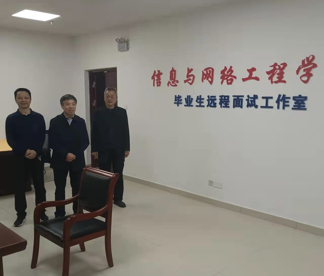 蒋德勤特别关心学院2022届毕业生的疫情防控和实习就业情况,详细了解了毕业生疫情防控措施、实习情况、签约情况和考研情况,指出党政领导和辅导员在当前疫情防控形势下尤其要“充满感情、带着温暖”做好毕业生实习就业工作,要想尽办法为毕业生排忧解难,要积极采取措施为考研学生创造良好的复试环境。在深入现场查看了“信息与网络工程学院毕业生远程面试工作室”后,蒋德勤对学院为学生办实事解难题的具体措施给予了充分肯定。他指出,远程面试工作室的建设为毕业生提供了优质服务,有效解决了毕业生在应聘远程面试、考研远程面试等方面存在的困难和问题,创造性地做好了毕业生就业工作。
