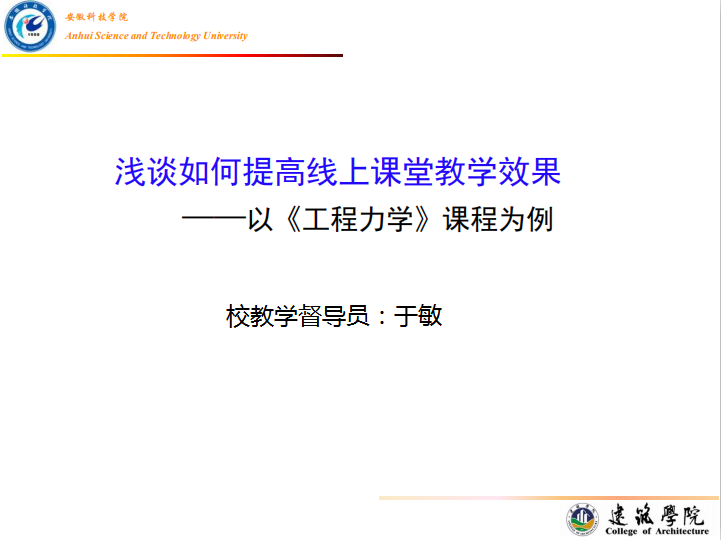 启动仪式后,校教学督导员,建筑学院副教授于敏作了题为《浅谈如何提高线上课堂教学效果——以《工程力学》课程为例》的首场教学专题讲座。(特约通讯员:张杰 审核:程斌 编辑:汤帅)