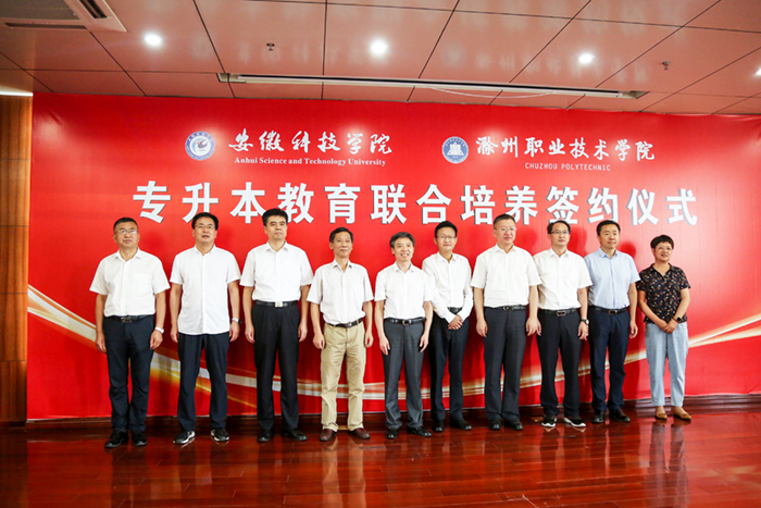 7月21日,我校与滁州职业技术学院专升本教育联合培养签约仪式在该校隆重举行。校党委书记蒋德勤,党委副书记、校长李震,党委委员、纪委书记、监察专员王强,党委委员、副校长黄友锐,滁州市政府副市长陆峰,滁州职业技术学院党委书记曹付忠,党委副书记、校长许雪峰,党委副书记杨家庆,党委委员、副校长江洁,党委委员、校长助理、招生就业处处长穆松及两校相关职能部门和二级学院负责人参加了签约仪式。