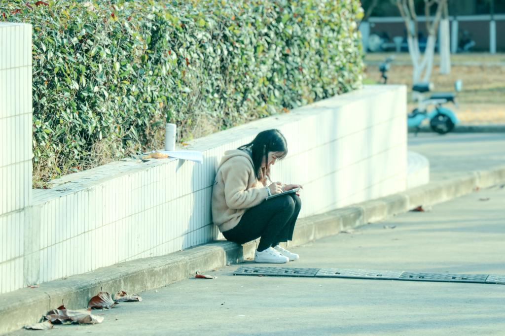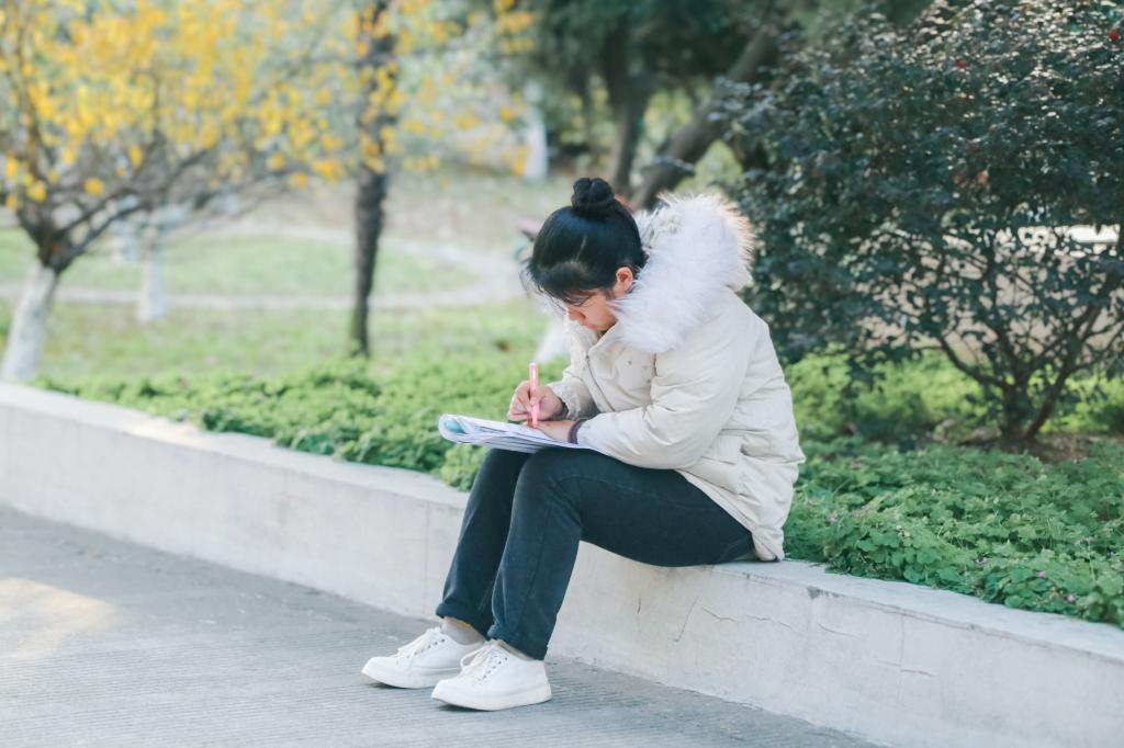 落叶纷飞,修竹在后。那一个个埋头深入学海的考研学子,听不见行人的脚步声和鸟儿的嘻笑声,只听见内心斗志昂扬的呐喊声!