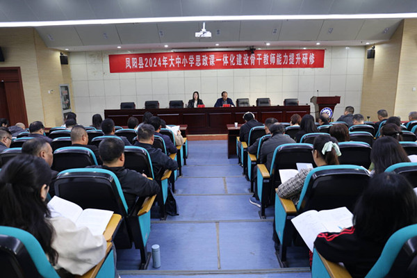 为持续推动凤阳县大中小学思政课一体化建设内涵式发展,11月1日至2日,由安徽科技学院、凤阳县教育体育局主办,马克思主义学院承办的凤阳县2024年度大中小学思政课一体化建设骨干教师能力提升研修在安徽科技学院凤阳校区第一报告厅举行,凤阳县各学段思政课骨干教师共106人参加了此次专题研修。开班仪式上,马克思主义学院党总支书记杨仕勇,凤阳县教育体育局工委委员、教研室主任王金先后致辞讲话。