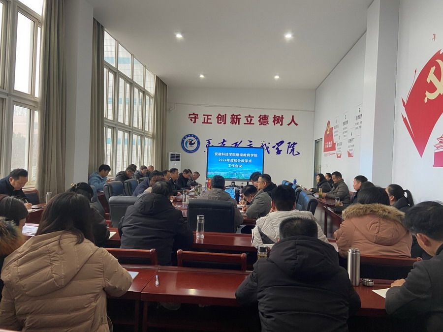 为进一步加强校外教学点的管理,规范教学点办学行为,2024年1月20日下午,继续教育学院在安徽科技学院老图书馆二楼会议室召开了2024年度校外教学点工作会议。我校各校外教学点负责人及相关工作人员40余人参加了会议,继续教育学院党支部书记、副院长(主持工作)李忠,副院长张文国及相关管理人员参加了会议,会议由张文国主持。