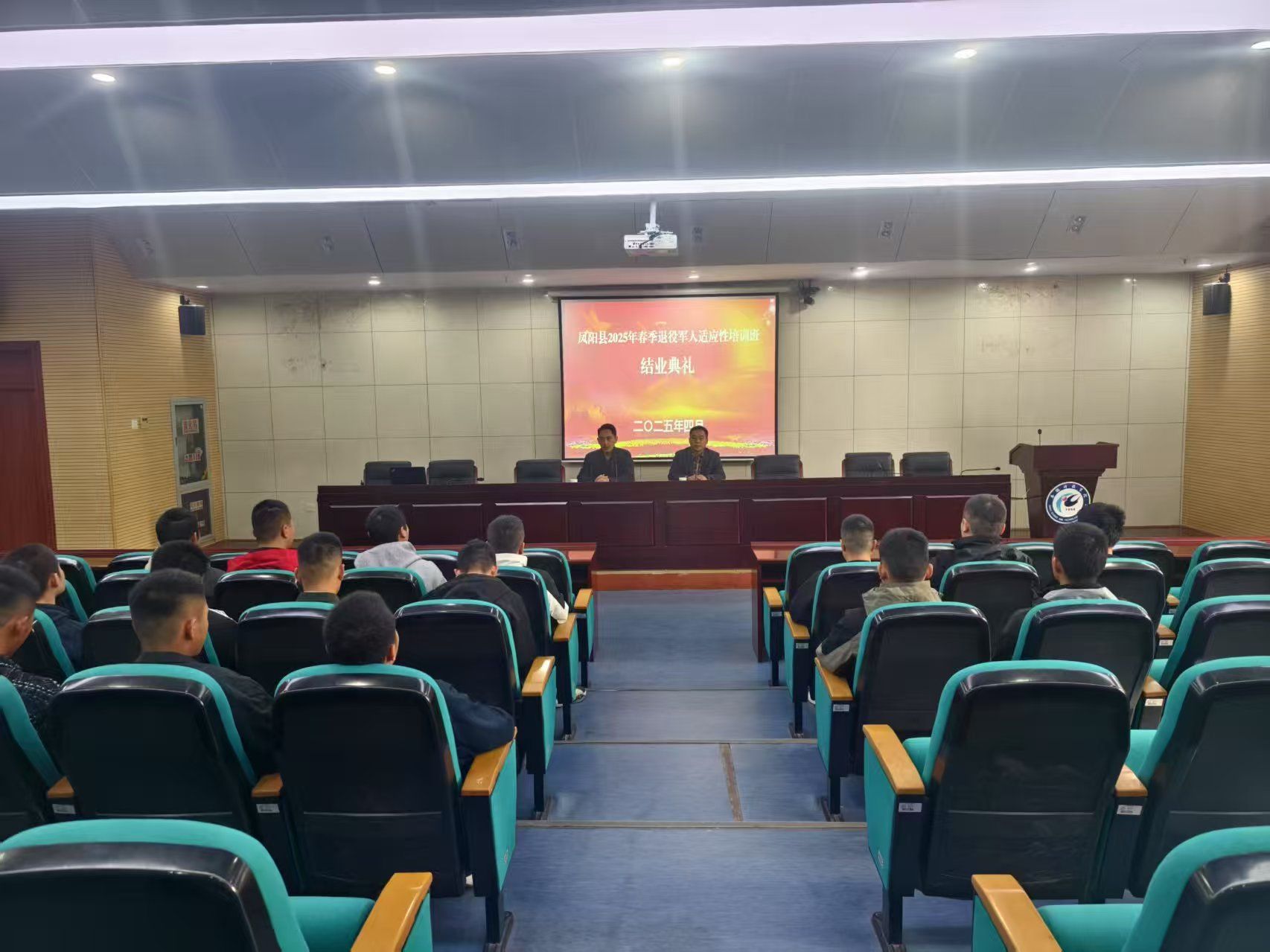 由凤阳县退役军人事务局主办,我校继续教育学院承办的凤阳县2025年春季退役军人适应性培训班在我校成功举办。4月1日上午,在我校会议中心一楼报告厅举行了开班典礼,凤阳县退役军人事务局党组书记、局长吴永先,凤阳县退役军人事务局党组成员、副局长周德玉,我校继续教育学院院长李忠以及来自凤阳县的30名春季退役军人参加了开班典礼。典礼由继续教育学院副院长张文国主持。