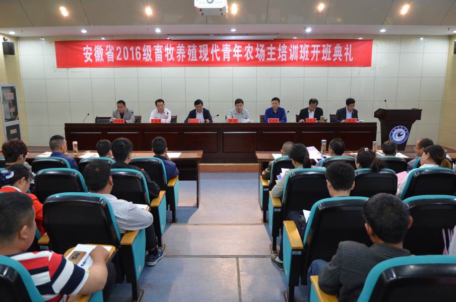 为贯彻落实《农业部办公厅财政部办公厅关于做好2016年新型职业农民培育工作的通知》(农办财[2016]38号)、《农业部办公厅关于开展全国新型农业经营主体带头人轮训计划的通知》(农办科〔2016〕21号)和《农业部办公厅关于做好2016年青年农场主培养工作的通知》(农办科〔2016〕22号)等文件精神,切实提高新型职业农民培训质量,推进规范化、系统化培养新型职业农民,2017年5月3日上午8时,由我校承办、省农委主办的安徽省2016级畜牧养殖养禽专业现代青年农场主培育培训班在校图书馆1楼报告厅举行了开班典礼。安徽科技学院副院长郭亮、动物科学学院院长王立克、后勤保障部主任程斌、继续教育学院院长彭光明,省农委科教处处长程世根、农科教办公室主任程晓冬、凤阳县农委副主任李国平以及教师代表、全体学员等参加了本次开班典礼,典礼由彭光明主持。