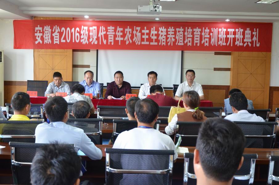 为贯彻落实《农业部办公厅财政部办公厅关于做好2016年新型职业农民培育工作的通知》(农办财[2016]38号)、《农业部办公厅关于开展全国新型农业经营主体带头人轮训计划的通知》(农办科〔2016〕21号)和《农业部办公厅关于做好2016年青年农场主培养工作的通知》(农办科〔2016〕22号)等文件精神,切实提高新型职业农民培训质量,推进规范化、系统化培养新型职业农民,2017年5月13日上午8时,由我校承办、省农委主办的安徽省2016级畜牧养殖生猪专业现代青年农场主培育培训班在校接待中心二楼会议室举行了开班典礼。继续教育学院院长彭光明、动物科学学院副书记李忠、后勤保障部副主任时乾、继续教育学院副院长杨维来、张敬强以及教师代表、全体学员等参加了本次开班典礼,典礼由杨维来主持。