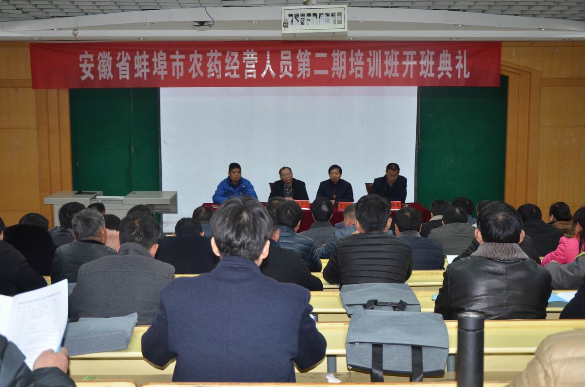 3月18日下午2:30,由蚌埠市农学会和安徽科技学院继续教育学院联合举办的2018年度蚌埠市农药经营人员第二期培训班,在学知楼216教室举行开班典礼。安徽省植保总站农药管理科科长宁伟文、蚌埠市农学会会长、我校农学院院长詹秋文、继续教育学院副院长杨维来、张敬强及118位学员参加了开班典礼,典礼由张敬强主持。