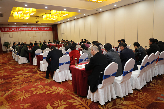 12月6至7日,我校作为安徽现代农业职业教育集团理事长单位,在凤阳县帝城酒店组织召开了安徽现代农业职业教育集团常务理事单位2019年年会。安徽科技学院院长李震、副院长黄友锐及来自集团的其他20家常务理事单位的56名代表出席会议,校办公室、教务处、招生就业处、农学院、动物科学学院、资源与环境学院、继续教育学院的负责人参加会议。会议分别由黄友锐和六安职业技术学院院长葛向东主持。